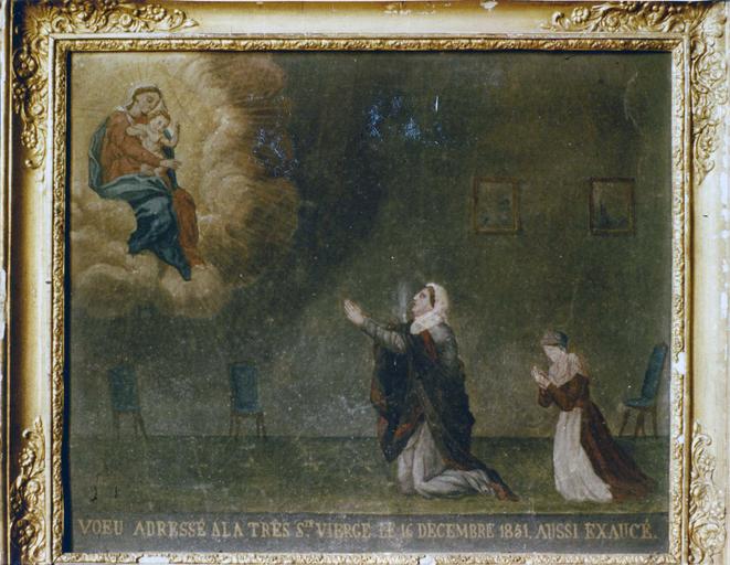 inscription : Voeu adressé à la Sainte-Vierge le 16 décembre 1851, aussi exaucé. Date : 1851