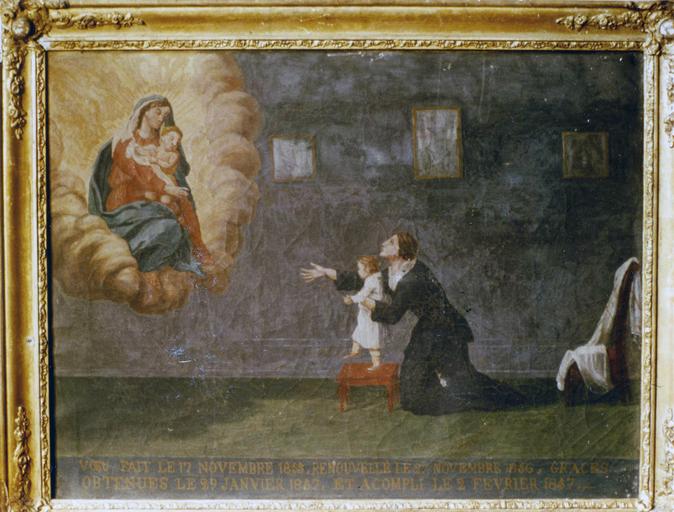 Voeu fait le 17 novembre 1955. ? le 2 novembre 1856. Grâces obtenues le 29 janvier 1857. et accompli le 2 février 1857.