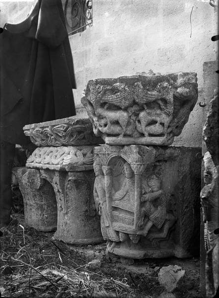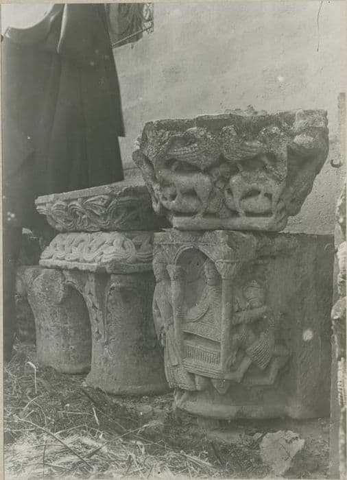 Parmi ces débris, il est des spécimens très curieux de la sculpture romane dans nos pays : la trahison de Judas, l'ange gardant le sépulcre, des rinceaux, des entrelacs. Le tout de lignes très riches, avec des méplats multiples, des perles.