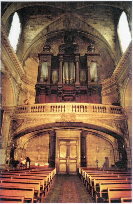 Le buffet est construit par le menuisier Hugla d'après des dessins et plans de l'architecte G. Durassier. Les ornements sculptés sont l'oeuvre de Clément Lamarque et la statue de sainte Cécile celle de Louis Coëffard de Mazerolles.