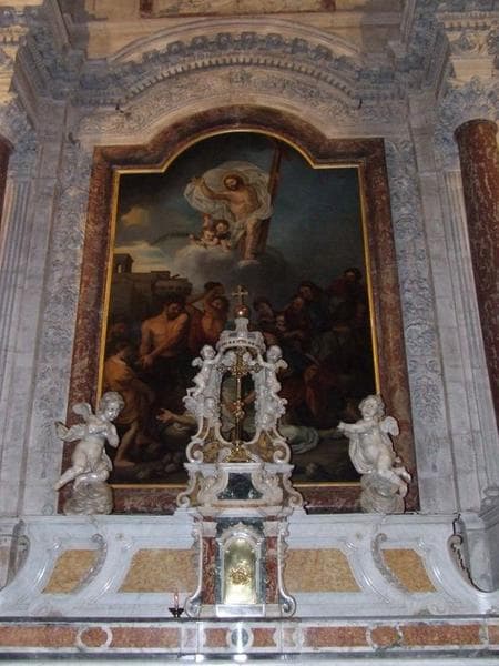 Retable formé de quatre colonnes corinthiennes en marbre de Caunes.