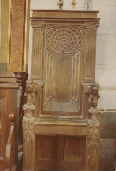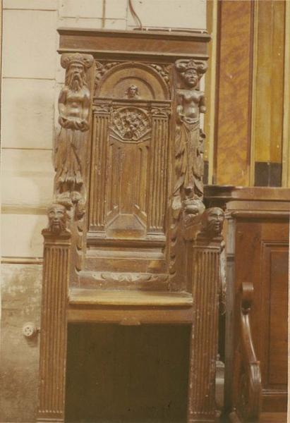 L'une des cathédres a son dossier orné d'atlantes, avec motif d'architecture en perspective au centre et ses accoudoirs sont soutenus par des pilastres. Le deuxième cathédre a son dossier orné de pilastres et d'une perspective d'architecture et ses accoudoirs sont soutenus par des atlantes en gaine.
