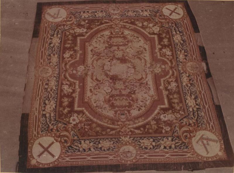 tapis de sol : Rinceaux de fleurs et de feuillage, dans des encadrements concentriques