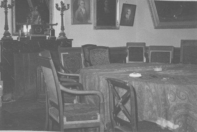 mobilier de la salle des commissions : 2 armoires, secrétaire, table (console), 14 fauteuils dont une bergère, chaise, tabourets (2)