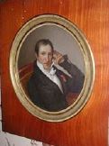 Miniature ovale dans un cadre en bois, cerclée d'un métal (cuivre?, laiton, bronze doré?), représentant Joseph de Villèle, assis, tête légèrement appuyée sur les doigts de sa main gauche.