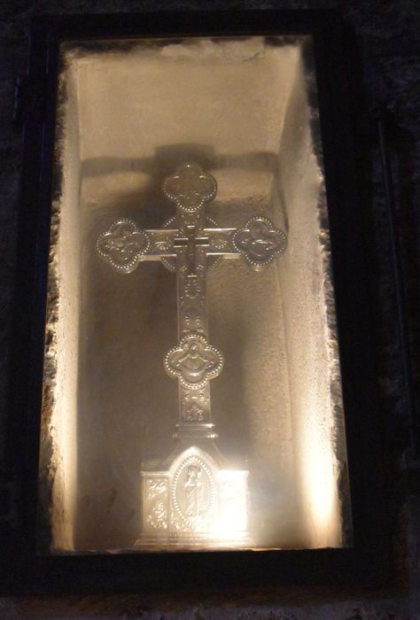 poinçon identifié : F.F., un soleil ; poinçons au revers de la croix et sur la bâte du pied ; sur un médaillon : ANTIQVAE ET SANCTISSIMAE CRVCIS PIETATE FIDELIVM NEC NON BENIGNITATE ILLVSTRISSIMI ET REVERENDISSIMI IN CHRISTO PATRIS F. LE COURTIER EPISCOPI MONSPELIENSIS SUFFVLTVS G. SEVERAC PRESBYTER S. GVILLELMI DE DESERTO ALTARE ET PHILACTERIVM POSVIT ANNO DOMINI 1862