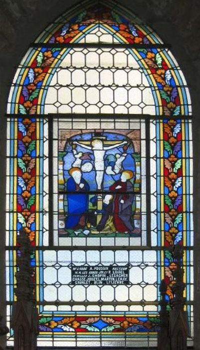 verrière : Christ en croix entre la Vierge et saint Jean (le)