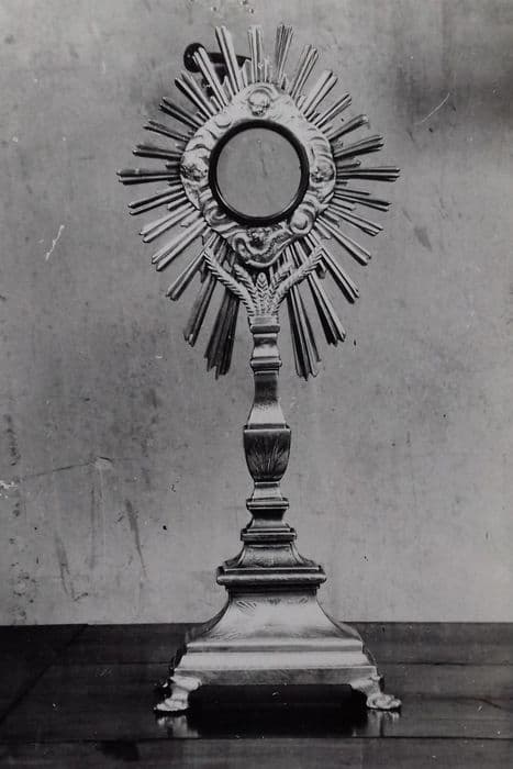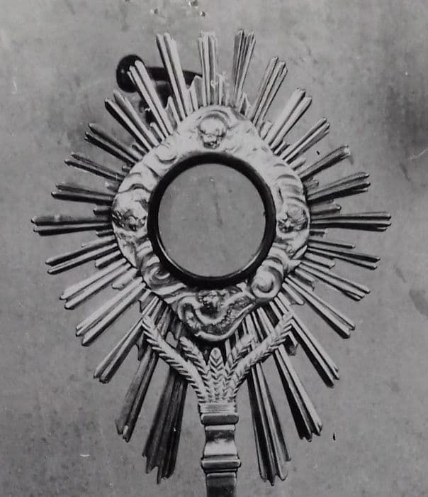 Une nuée avec des têtes d'angelots environnent la lunule. Des rayons en sortent, de façon à dessiner un losange. Cinq épis rattachent le pied au soleil.