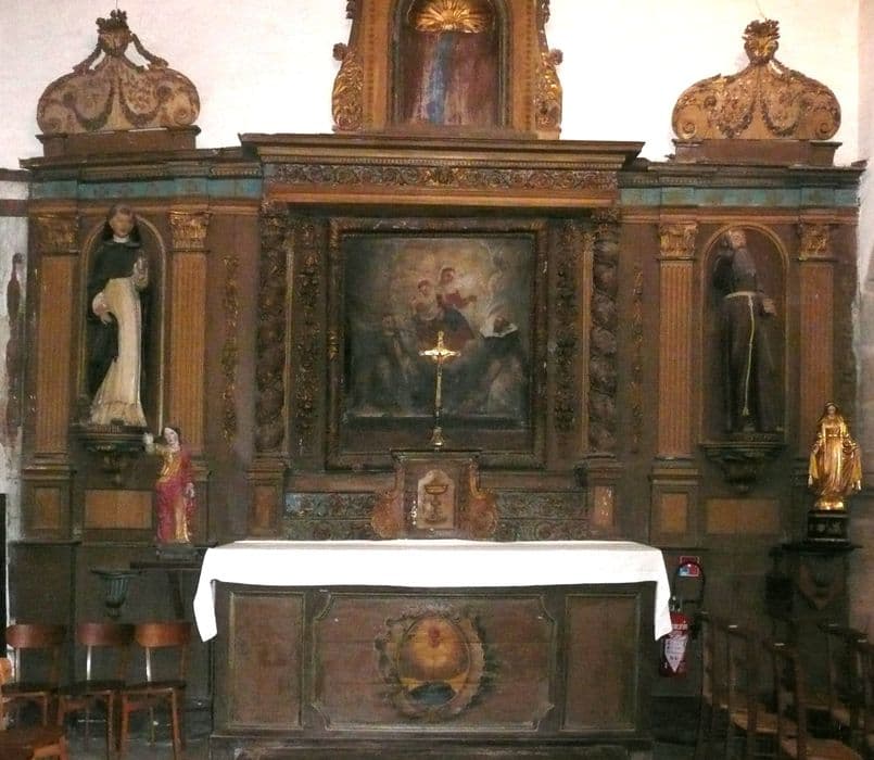 retable, 3 statues : Notre-Dame-de-Pitié, saint Dominique, saint François