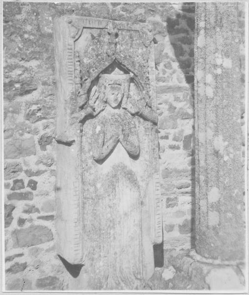 Cette tombe figure une femme en haut relief que l'on dit être une dame de Vauxelles (manoir en Nouvoitou).