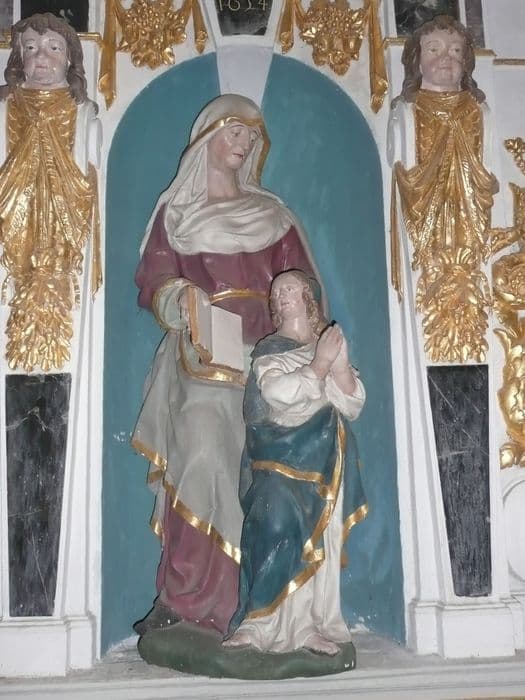 autel, retable, groupe sculpté : sainte Anne et la Vierge