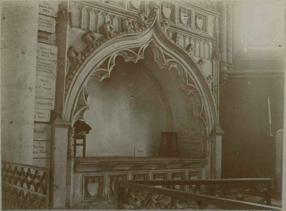 Tombeau se composant d'une niche voûtée renfermant le sarcophage décoré de six panneaux sculptés avec des écussons dont les armes sont mutilées. La dalle supérieure, moulurée, recevait autrefois l'effigie de l'abée Raoul de Pontbriant qui a disparue. Entourant la niche, une arcade en accolade avec trilobes et crochets. Au-dessus, une frise, des écussons dans les panneaux sculptés.
