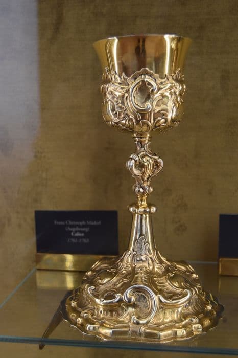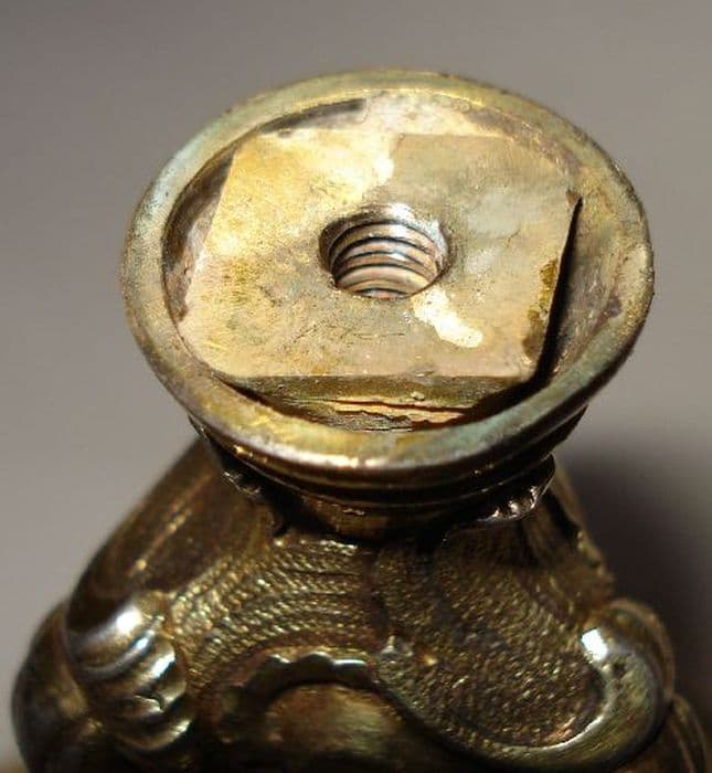 Décor de cartouches rocaille sur le pied, le noeud et la coupe.
