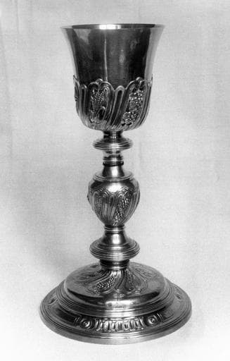 Décor d'épis et de grappes alternés sur le p ied, le noeud et la fausse coupe.