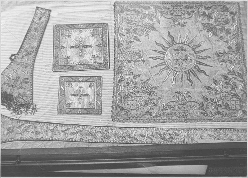 chasuble, étole, manipule, voile de calice, bourse, corporal