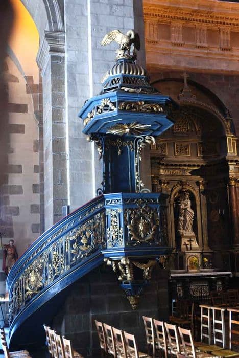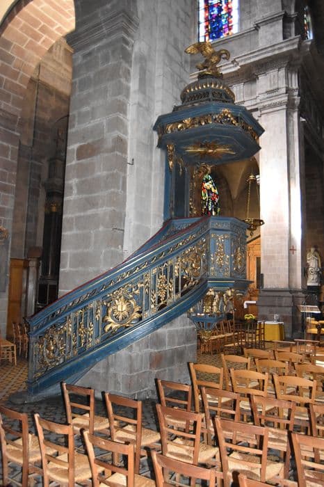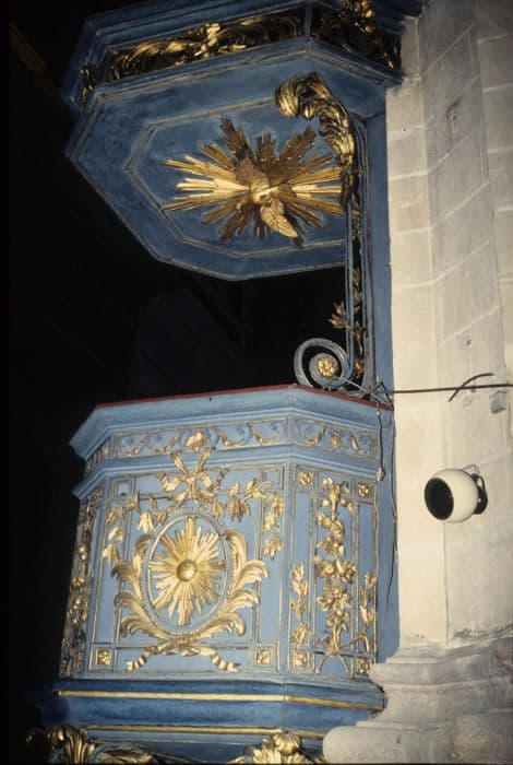 La rampe est ornée de médaillons et de pilastres, de chutes de feuilles et de fruits. La caisse est octogonale. Les faces larges sont ornées de médaillons entourés de palmes et suspendus par des rubans qui nouent au-dessus d'eux des feuilles de laurier. Les encoignures sont des pilastres avec des chutes de feuilles et de fruits. Les deux côtés du dossier sont décorés de volutes et de fines branches de lauriers. son sommet est aussi décoré d'une guirlande de lauriers et de rubans retenant des palmes. Un dôme à godrons surmonte l'abat-voix. Sous la caisse, le culot est composé de feuilles d'acanthe.