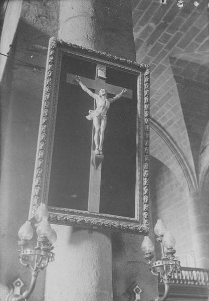 nef centrale, contre un pilier, face à la chaire à prêcher