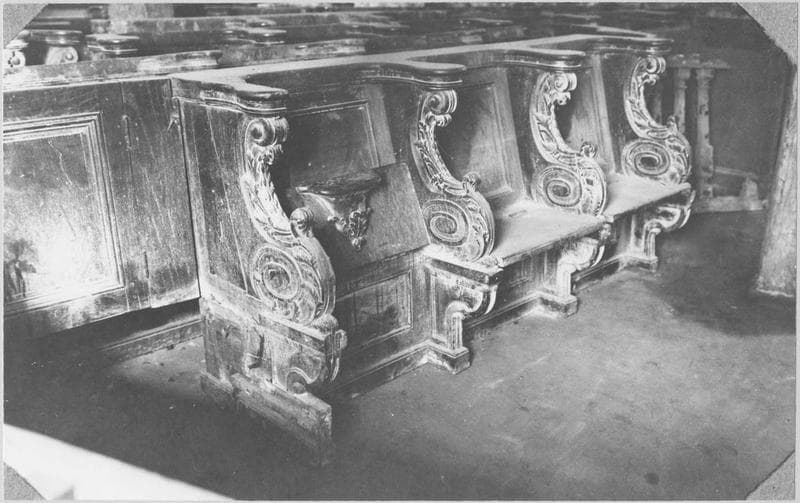 Stalles (?). Accoudoirs à enroulements, en forme de console renversée.