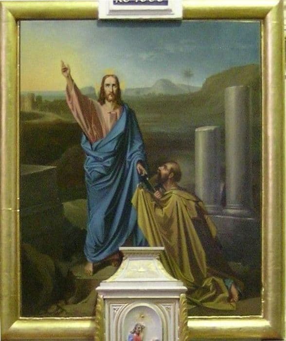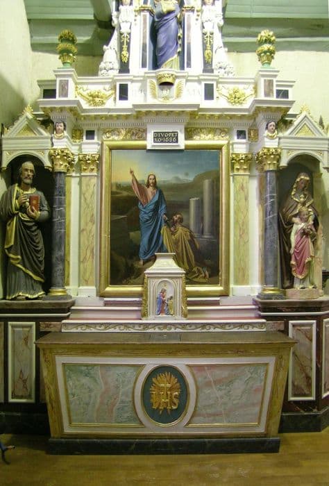 Au centre du retable, un tableau moderne encadré de deux colonnes corinthiennes de marbre gris doublées de pilastres en pierre peinte qui imite le marbre jaune jaspé de noir. Deux pilastres noirs accostent une niche supérieure.