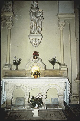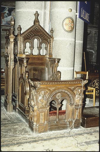 POP | Plateforme ouverte du patrimoinemaître-autel et autels secondaires, clôture liturgique (table de communion), chaire à prêcher, confessionnaux, 16 lustres, pavement du choeur (œuvre volée)