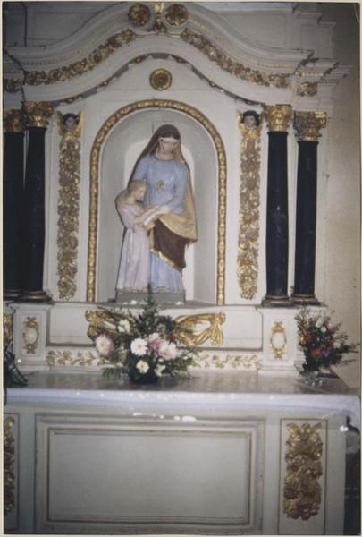 Oeuvre exécutée vers 1655. L'arrété de classement comprend l'autel, le retable et la statue de sainte Barbe, maïs exclue la statue de sainte Anne.