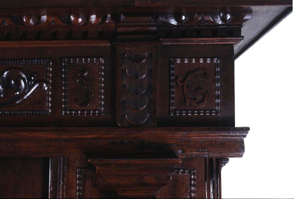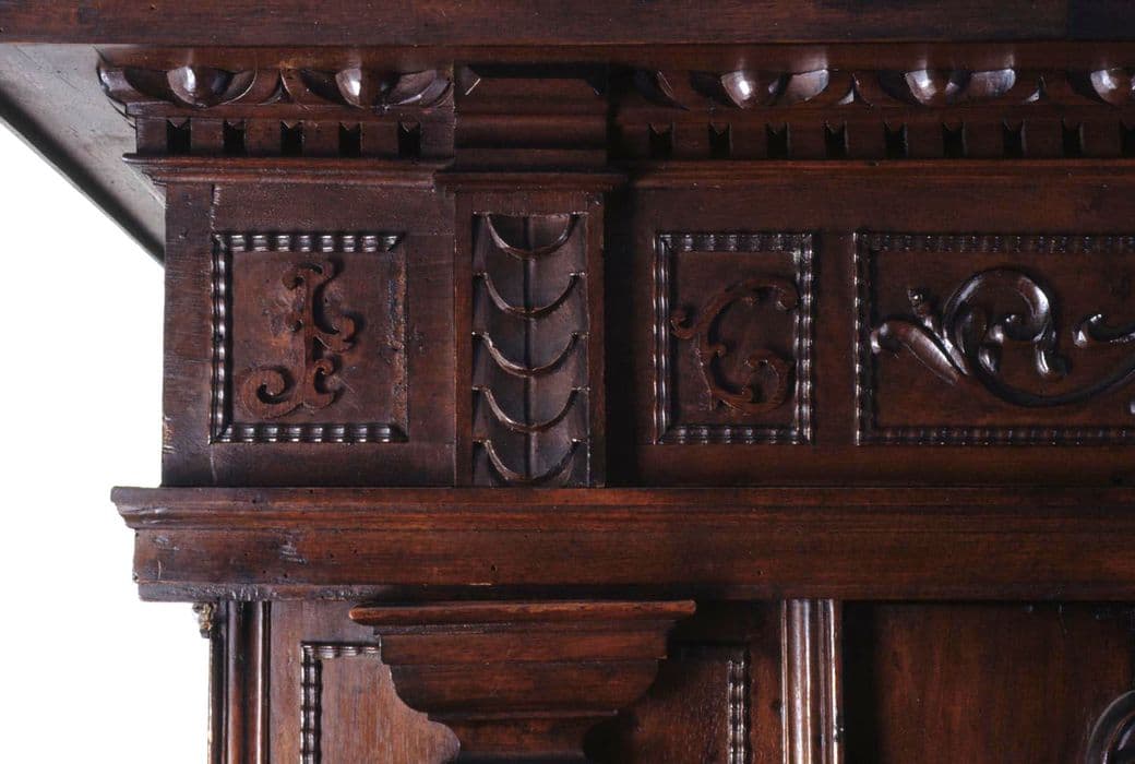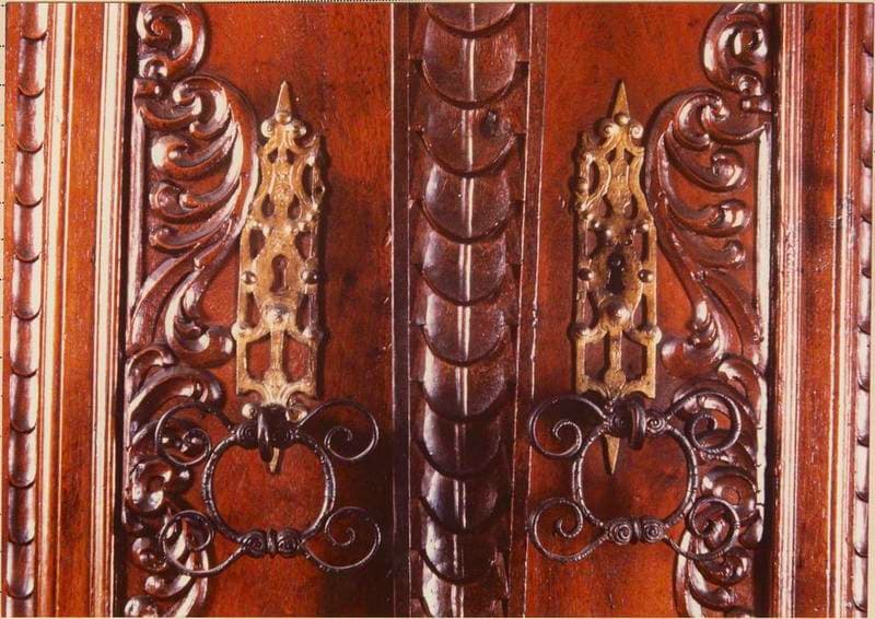 Armoire à deux portes et base formant coffre à deux faux tiroirs.