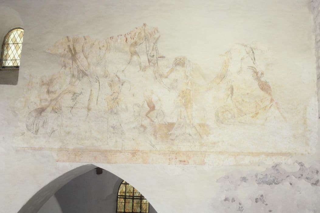5 peintures monumentales : la Mise au tombeau, la Descente du Christ aux Limbes, la Résurrection, l'Apparition du Christ à la Madeleine, représentation de l'enfer