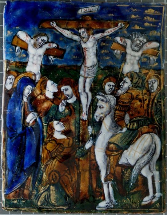 Plaque faisant partie du volet droit d'un triptyque formé de 32 panneaux d'émail peint.