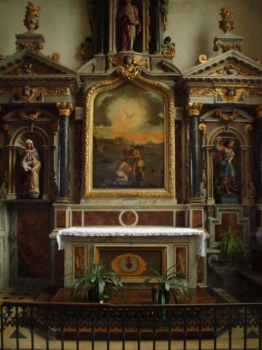 POP | Plateforme ouverte du patrimoineretable du collatéral sud, son tableau : Baptême du Christ et ses deux statues : Saint Jean-Baptiste et Saint Michel