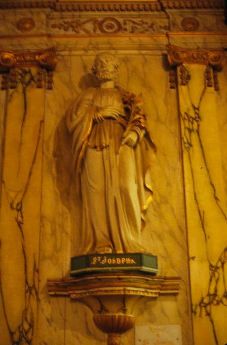 retable du maître-autel et ses deux statues : Sainte Justine et Saint Joseph