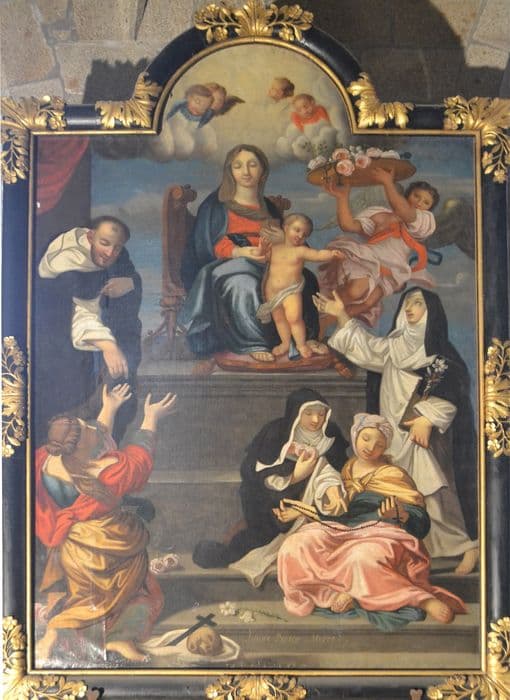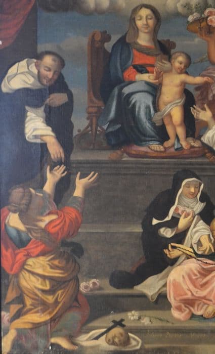 Apparition de la Vierge à saint Dominique ; sainte Catherine de Sienne ; remise : rosaire