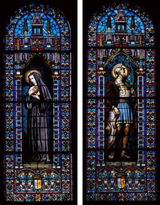 deux verrières : Sainte Jeanne de Chantal (baie 5) et Saint Maurice (baie 3)