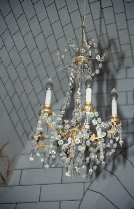 lustre en bronze : h = 100 ; lustres en verrerie : h = 90 ; lustres néo-roman : h = 110