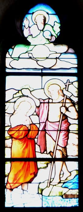 POP | Plateforme ouverte du patrimoinehuit verrières : Cène (baie 1), Calvaire (baie 2), Annonciation (baie 3), Jésus présenté au peuple (baie 6), Christ juge (baie 8), Baptême du Christ (baie 10), Baptême de Clovis (baie 14), Baptême de Constantin (baie 12)