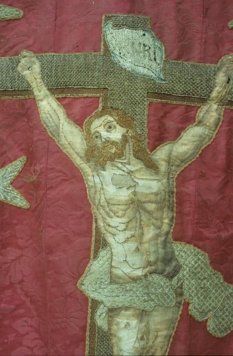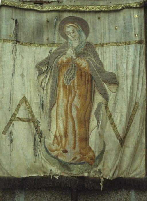 POP | Plateforme ouverte du patrimoinebannière de procession : Christ en croix et Immaculée Conception
