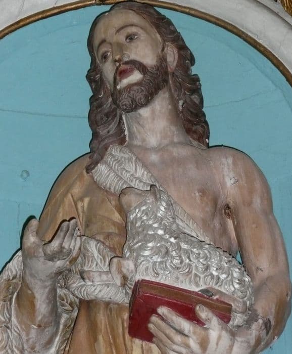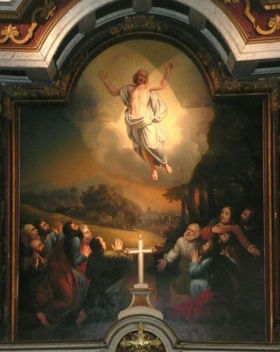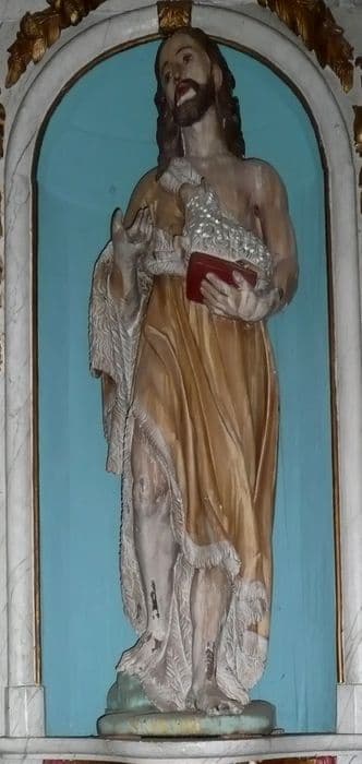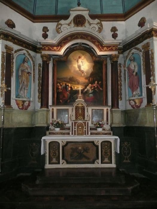 POP | Plateforme ouverte du patrimoineretable du maître-autel avec son tableau : Ascension du Christ et ses deux statues : Saint Jean-Baptiste et Saint Pierre