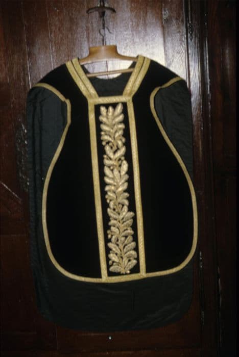 ornement noir : chasuble, étole de clerc, voile de calice, manipule et bourse de corporal