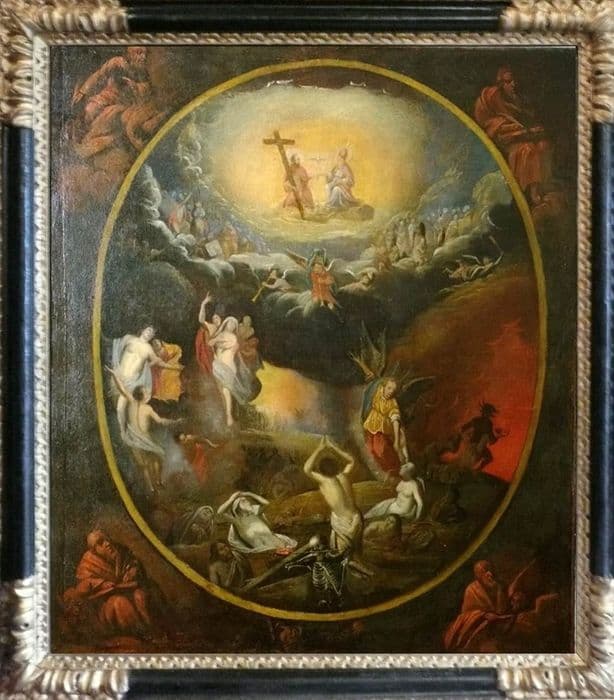 toile (support) : peinture à l'huile, vernis ; bois : peint, doré