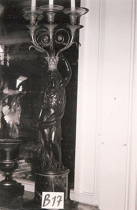 2 pieds porte-luminaire, 4 bras de lumière (œuvre volée)