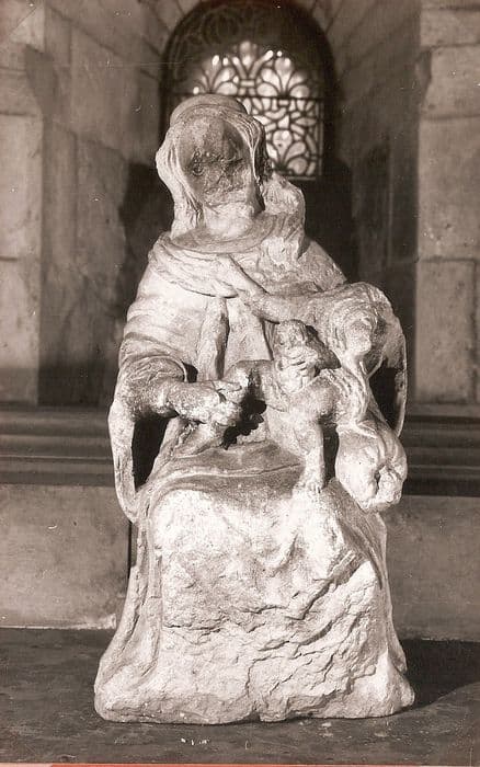 fragments de sculpture (dépôt lapidaire) et statue : Vierge à l'Enfant à la grappe