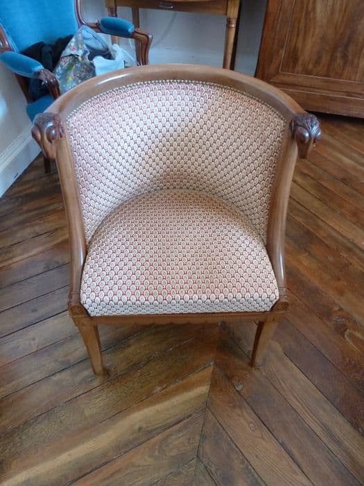 Fauteuil orné de têtes de bélier avec pieds en gaine de sabre.
