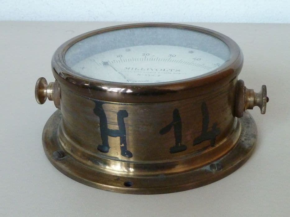Millivoltmètre de la marque Deyrolle (Paris), portant les numéros d'inventaire H 14 et 970-8.