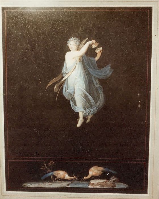 six dessins et leur cadre : L'Amour sur son char ; La Victoire ; La Danse, tenant une cymbale ; Femme coiffée de serpents ; Femme couronnée de lauriers ; La Danse, tenant un tambourin