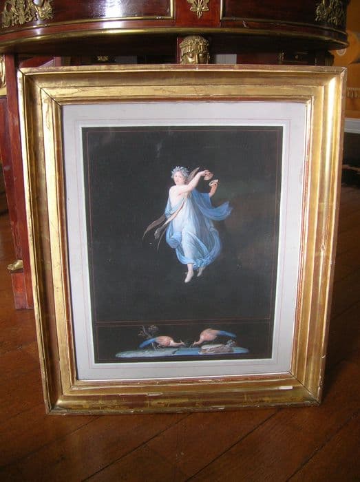 dessin et son cadre : Femme couronnée de lauriers