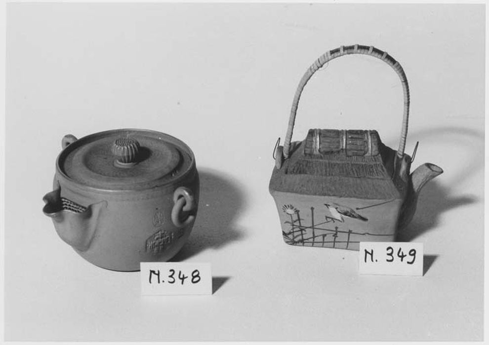 un pot,un eventail et une theiere sur la panse