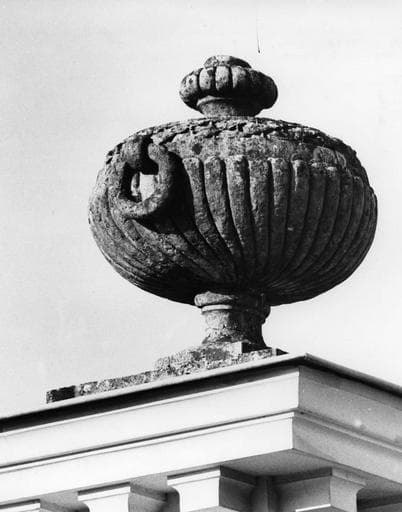 sur les piliers ornant l'escalier dans les jardins de l'hôpital (vers la rue Bretonneau)