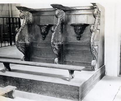 Divisées en trois groupes, huit du côté de l'évangile, deux et cinq du côté de l'épître, ces stalles ont leurs accoudoirs et leurs miséricordes sculptés.