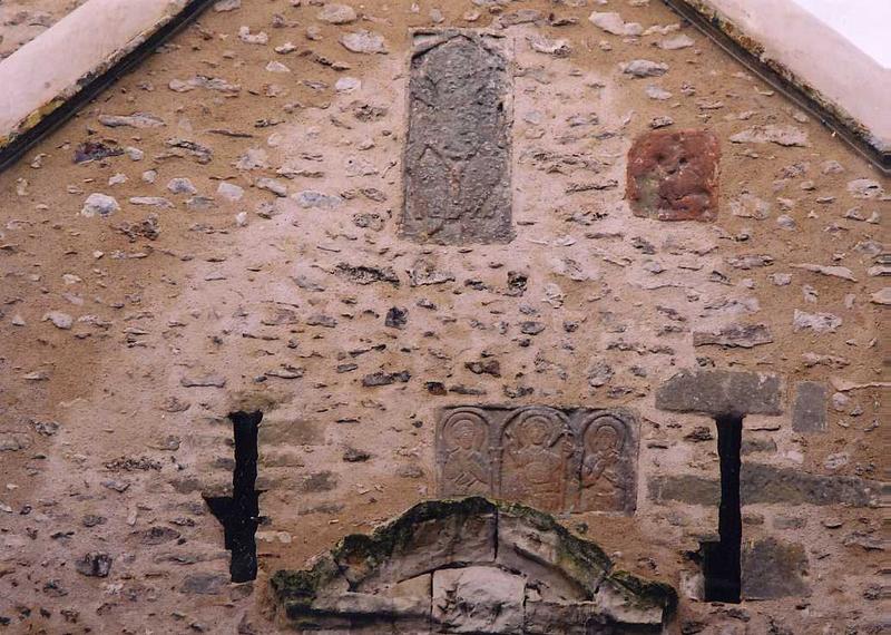 3 bas-reliefs : le Christ bénissant deux apôtres, le Christ en majesté, Animal (un)