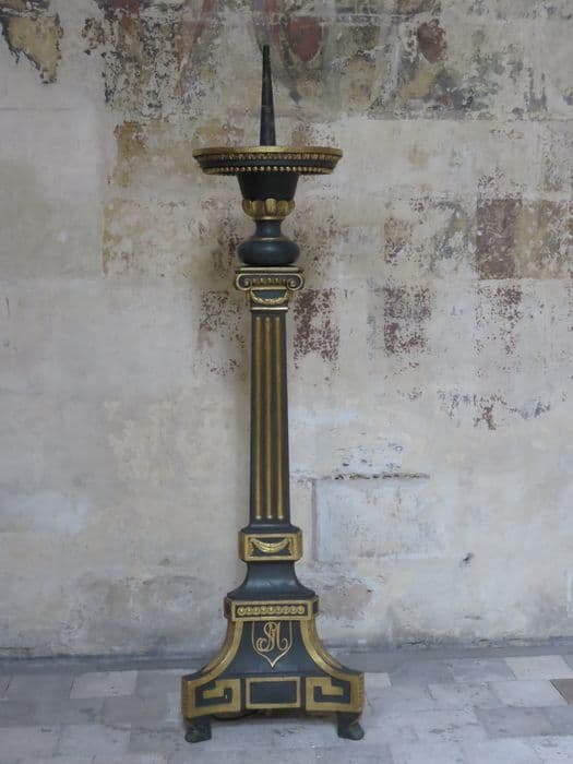 Chandelier en bois peint et doré de la fin du 18e siècle, portant le chiffre de saint Gatien.