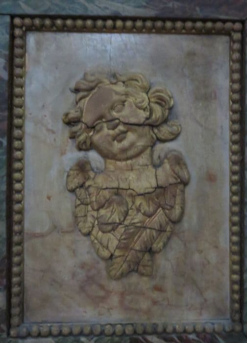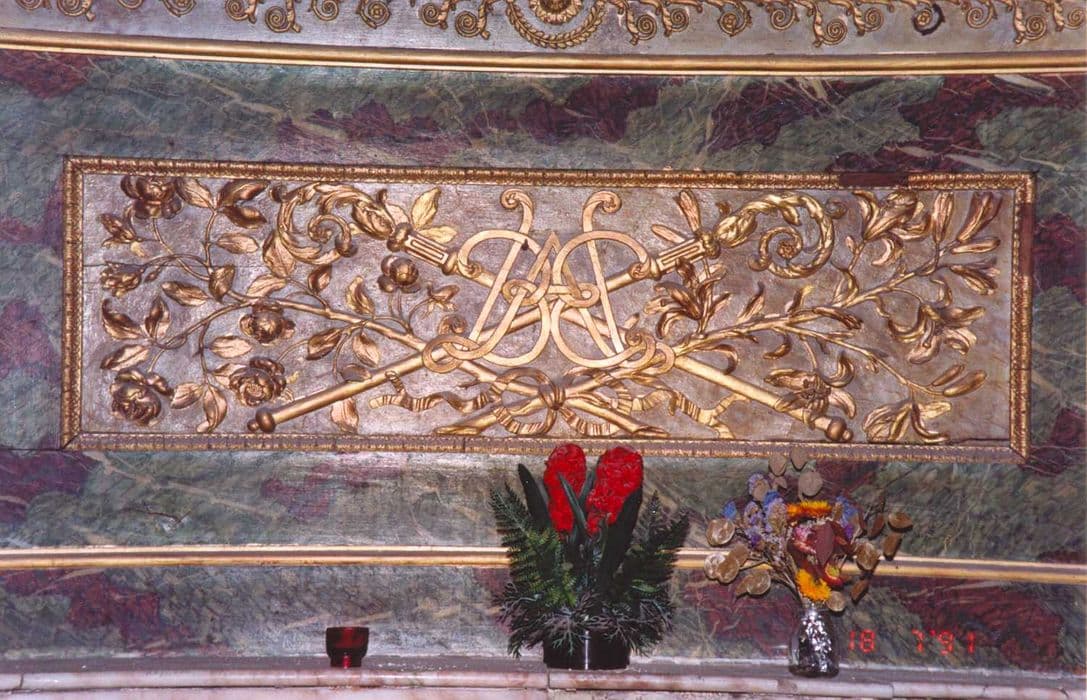 déambulatoire, coté nord, cinquième chapelle, encastré dans la décoration de l'autel